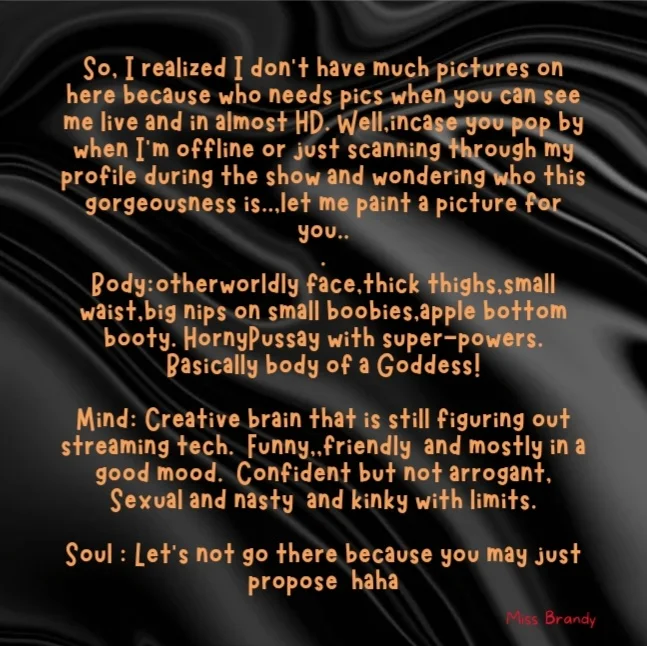 Ballo erotico, Ditalino, Masturbazione, Giocattoli per capezzoli, Giocattoli erotici, Doccia, Fumo, Squirt, Twerk, Linguaggio esplicito, Spogliarello, Topless, Orgasmo, Dildo o Vibratore